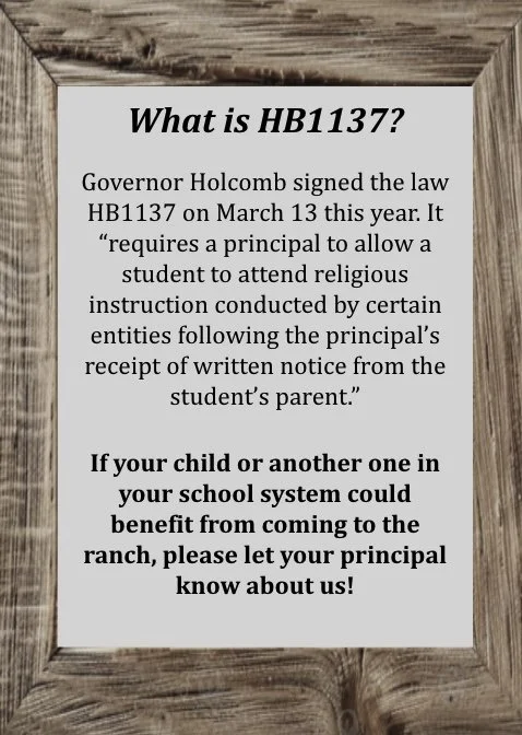 During the Fall Sessions, two local schools participated in the new state law granted by HB1137 and made the short trek to Narrow Gate Horse Ranch once a week. The kids who come have experienced trauma, are most often struggling with behavior issues, and integrating into school culture in appropriate ways.